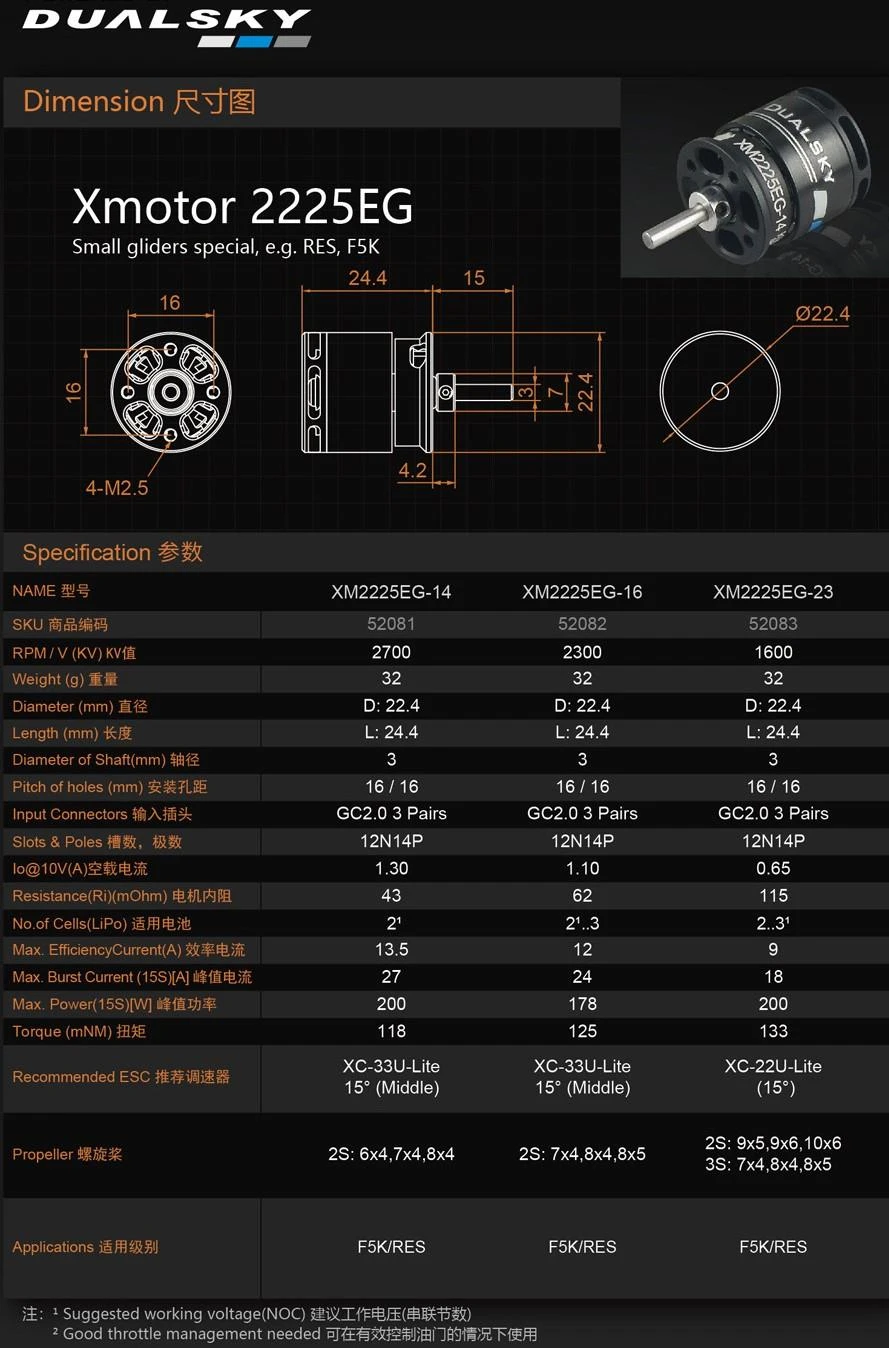 The Dualsky XM2225EG-14 is a high quality outrunner for models weighing 200 – 600g.