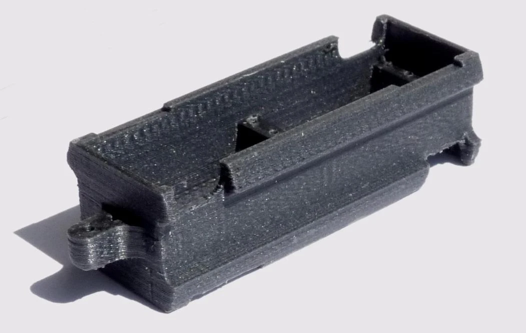 A 3D printed part for mounting two MKS DS75K/MKS HV75K servos (towards the rear) and two KST X08 servos (at the front) in an NRJ discus launched glider.