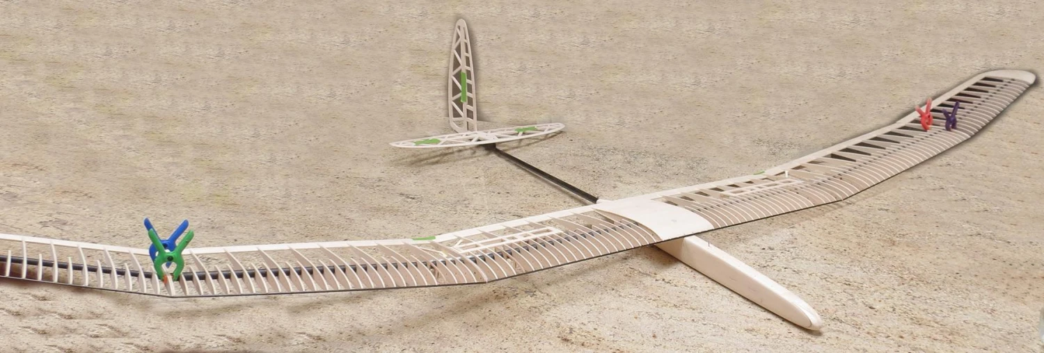 The kit is beatifully made up with excellently CNC cut balsa and ply parts. The wing is built over/in a 3D jig which ensures all the ribs are perfectly placed and aligned. This can be seen in the clear photos in the Purito German Build Manual. In addition to the manual, full size plans are povided for the tail surfaces. English speakers should refer to the RCGroups Purito thread for detailed build info and Google translate the German text if necessary. Also use Google Translate on this very useful RC-Network.de Purito thread. Before building please checkout this link to the latest manuals and translations.