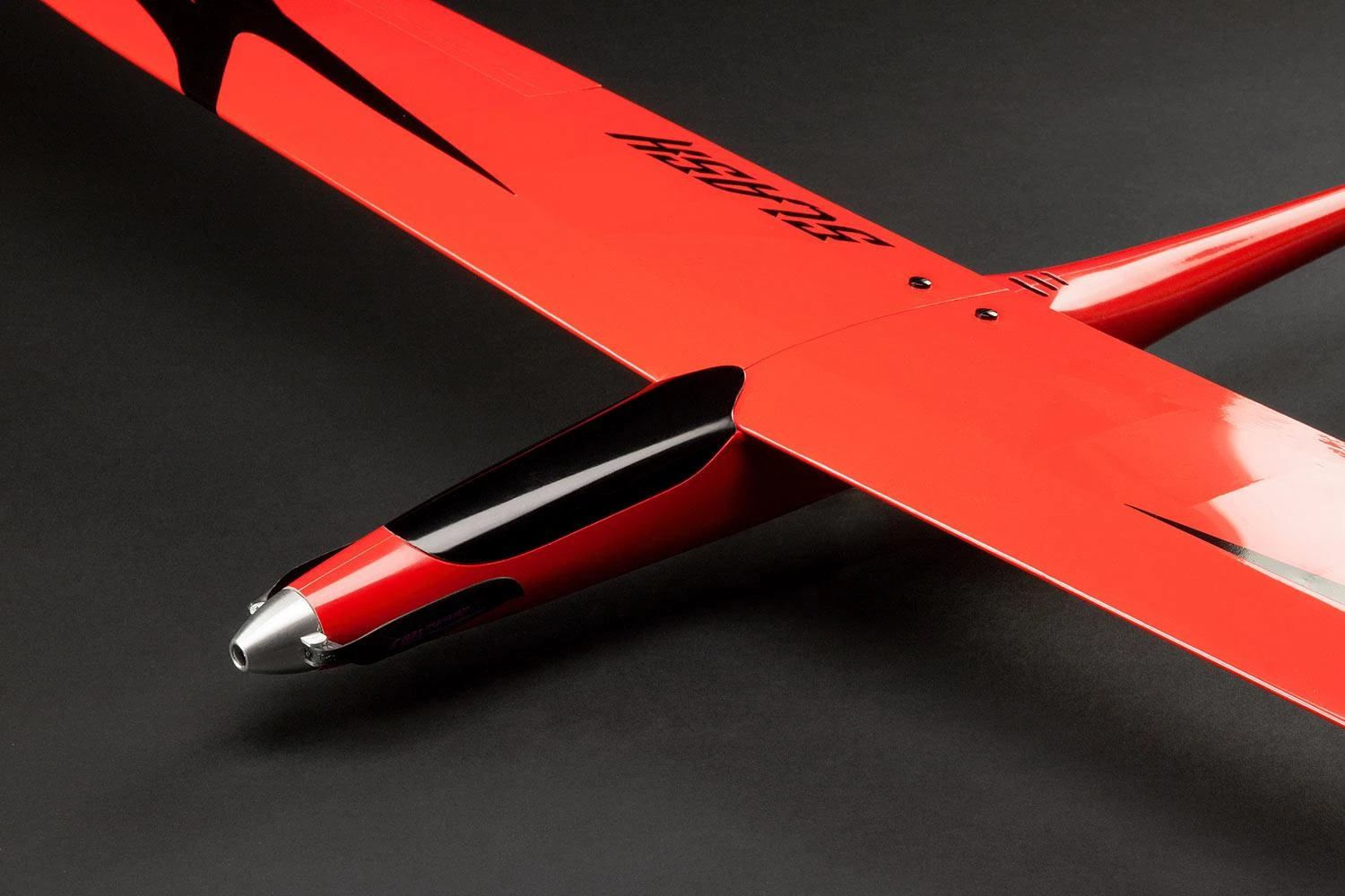Very well made entry level electric sailplane. Supplied fully covered – the naked photo is to illustrate the construction.